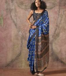 Royal blue ajrakh print satin georgette sarees