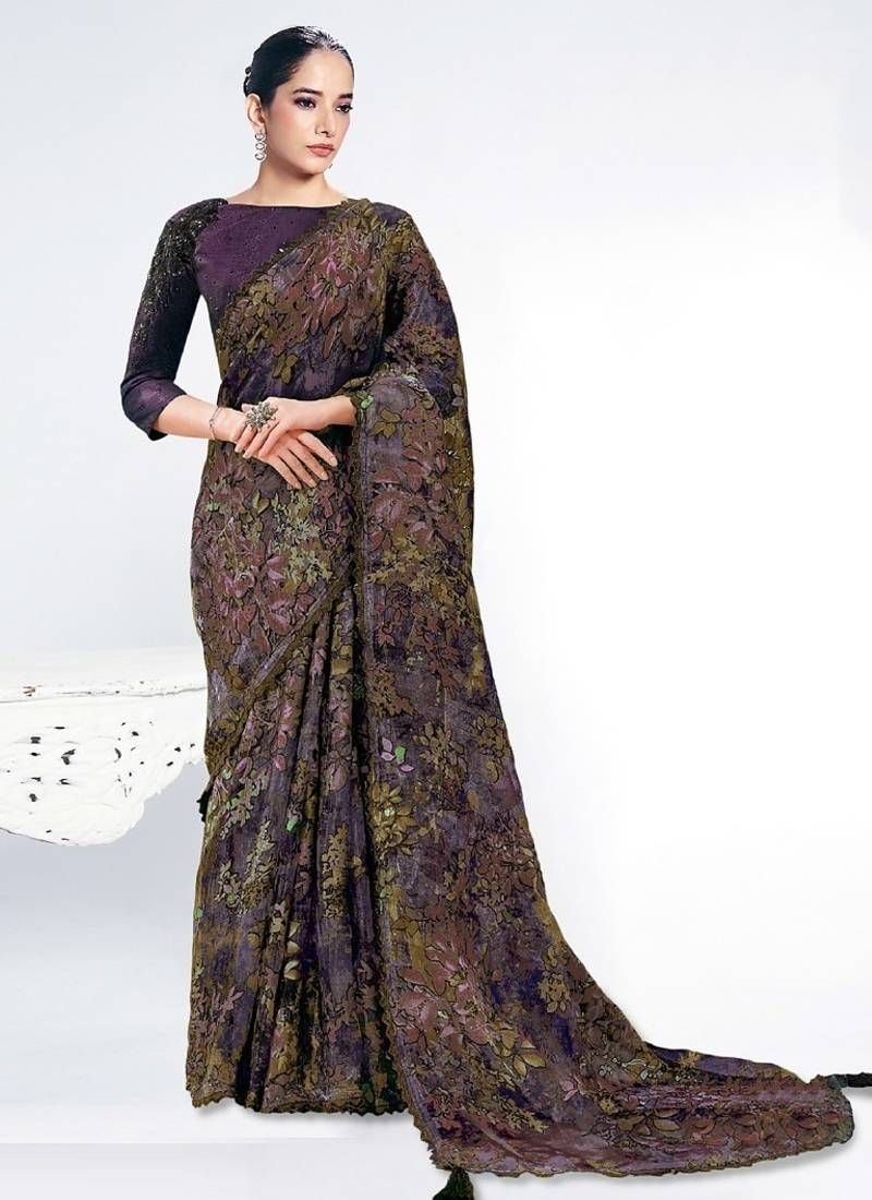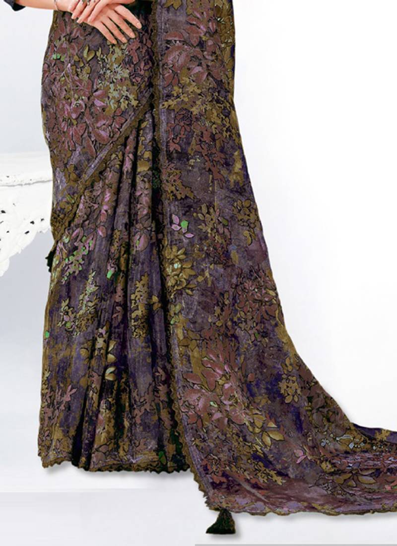 Product Name | Dark Purple Brasso Digital Print With Embroidery Hand Work Saree | |