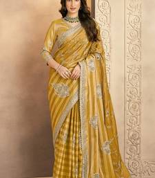 | Product Name | Golden Kanjivaram Zari Silk Blend Sequince & Aari Work With Stone Designer Saree | |