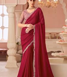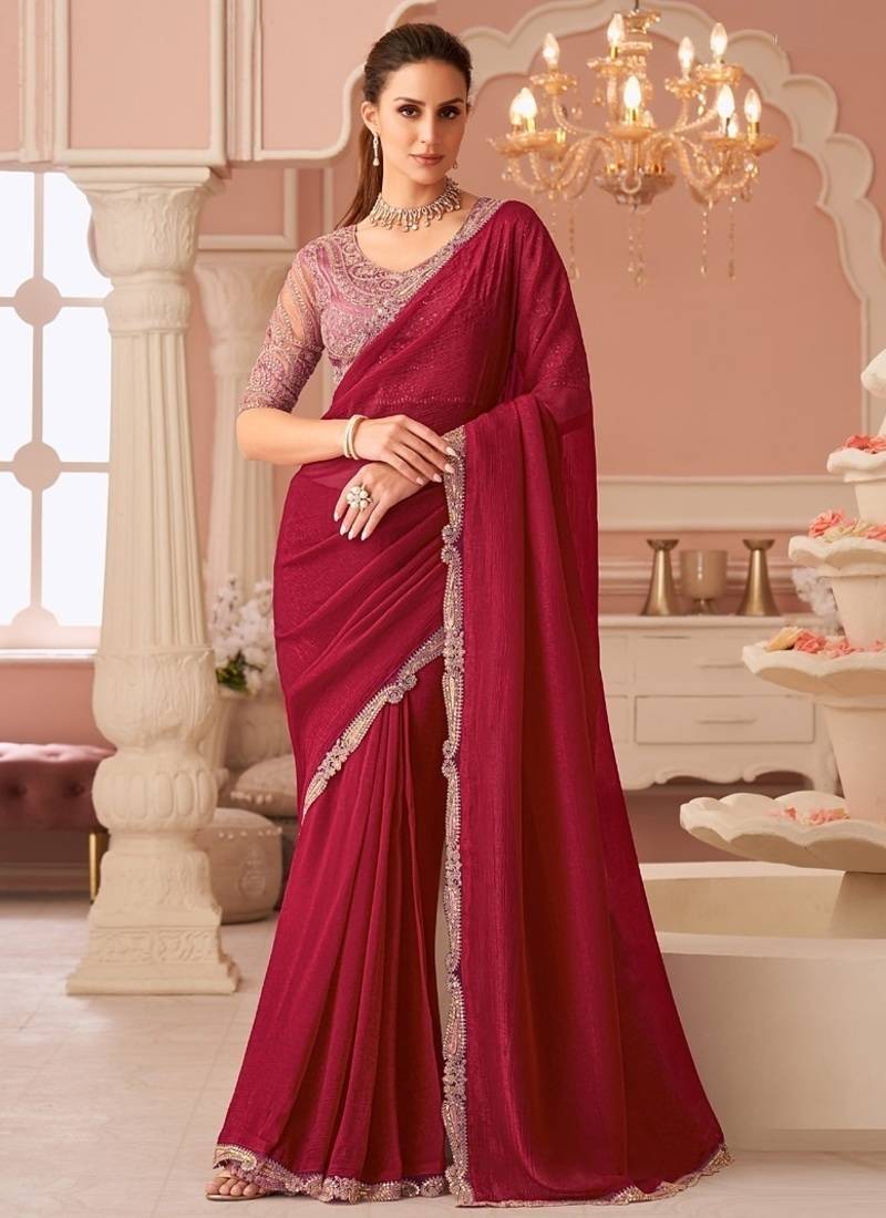 Maroon georgette sequince & cut work border heavy designer blouse party wear saree
