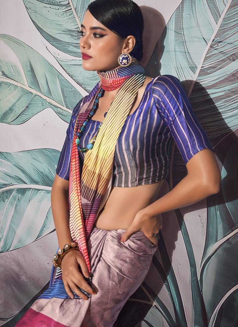 Multicolour crape digital printed casual wear saree