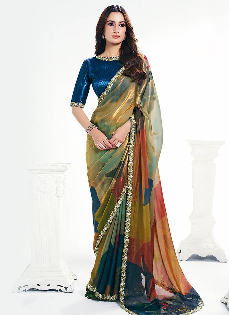 Product Name | Multicolour Two Tone Satin Silk Digital Printed Embroidery Hand Work Saree | |