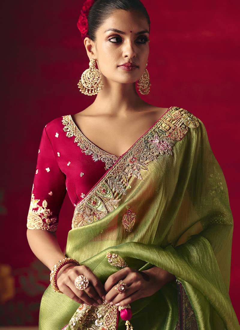 | Product Name | Olive Fancy Saree With Sequins Dhaga & Thread Embroidered Butti And Designer Blouse | |