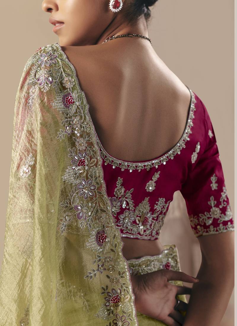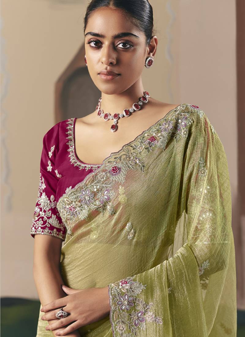 • | Saree | : | Color- Olive / Fabric- Glass Tissue |