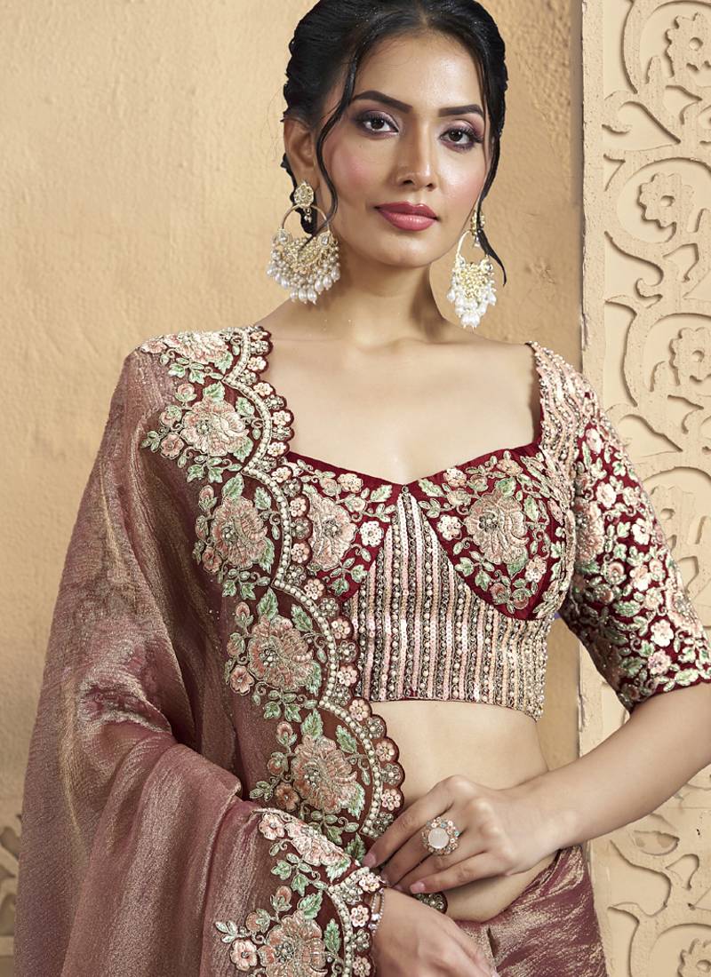 | • | Saree | : | Color- Onion Pink / Fabric- Banarasi |