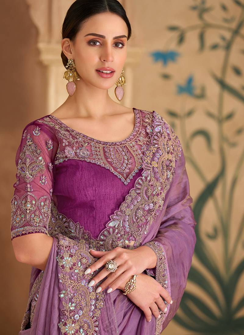 Onion pink tissue crashed georgette saree & banglori work blouse