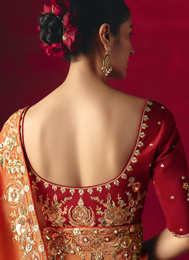 | Product Name | Orange Fancy Saree With Sequins Dhaga & Thread Embroidered Butti And Designer Blouse | |