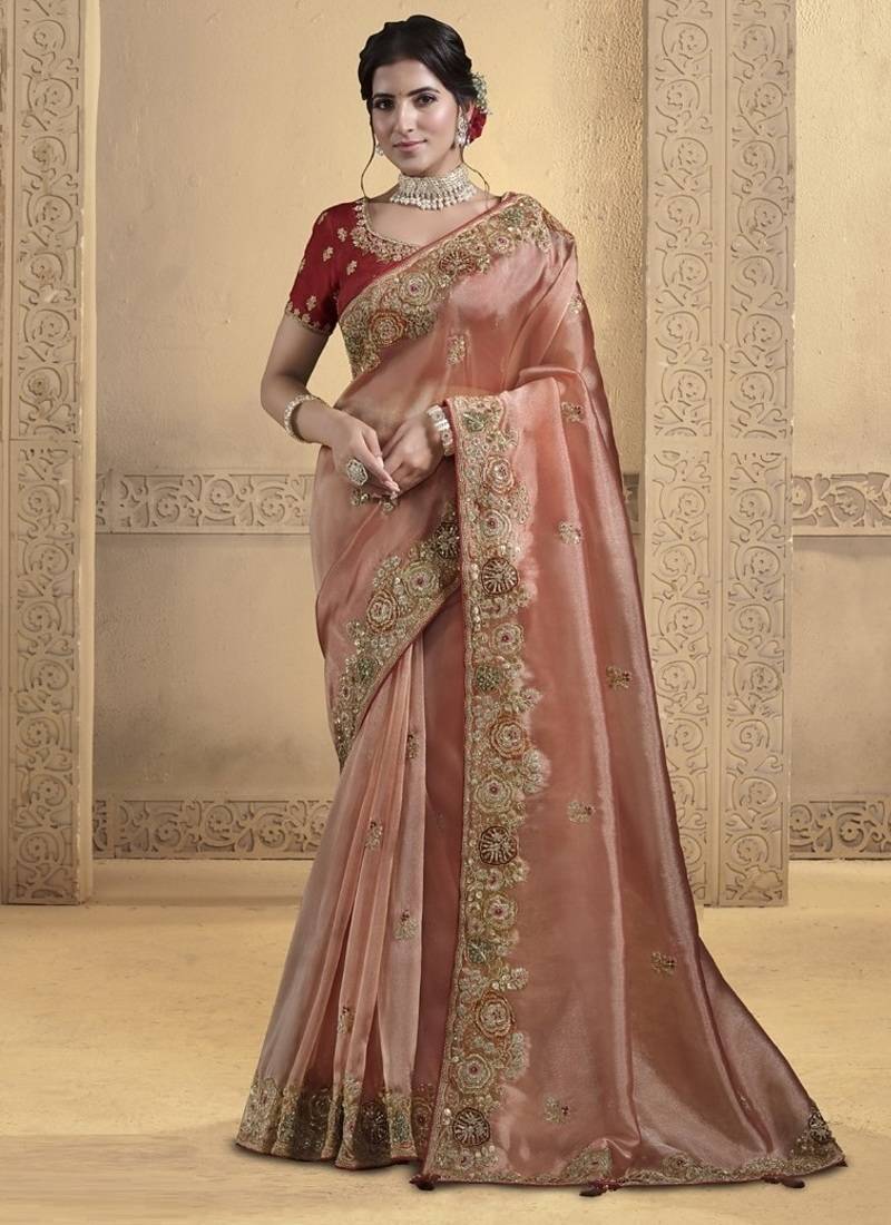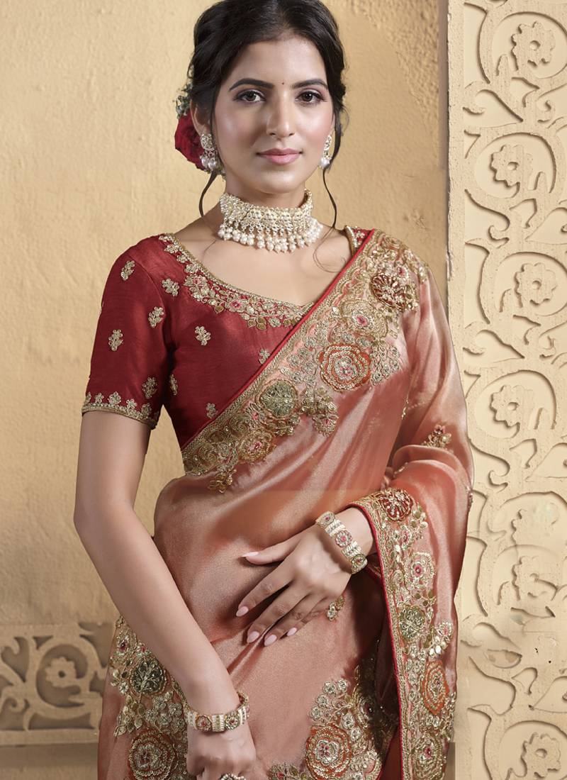 | Product Name | Peach Glass Tissue Sequince With Thread Work Designer Saree | |