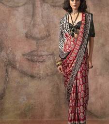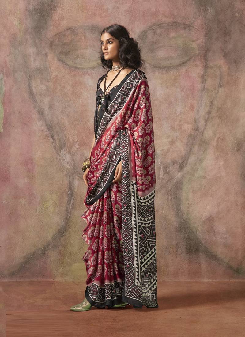 Red ajrakh print satin georgette sarees