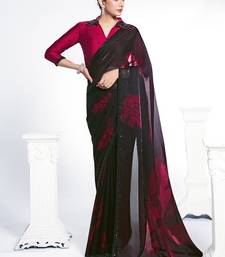 Ruby red & black two tone satin silk digital printed embroidery saree