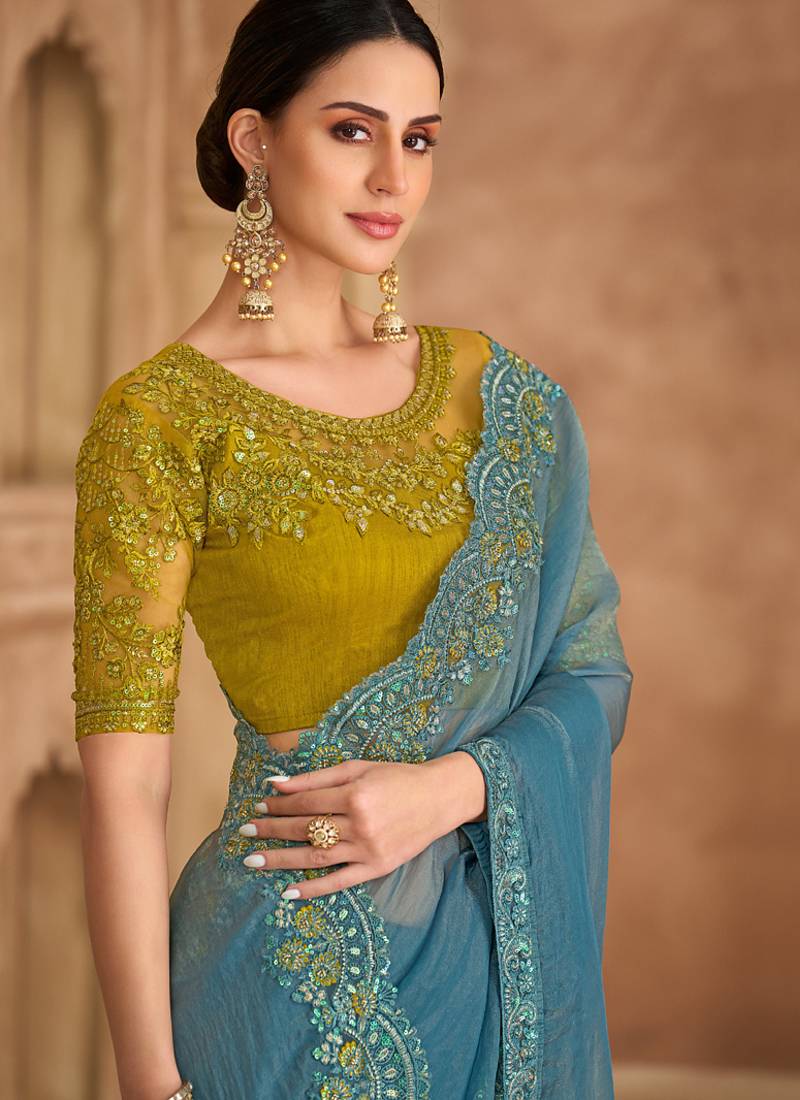 | Product Name | Sky Blue Tissue Georgette Saree & Banglori Work Blouse | |