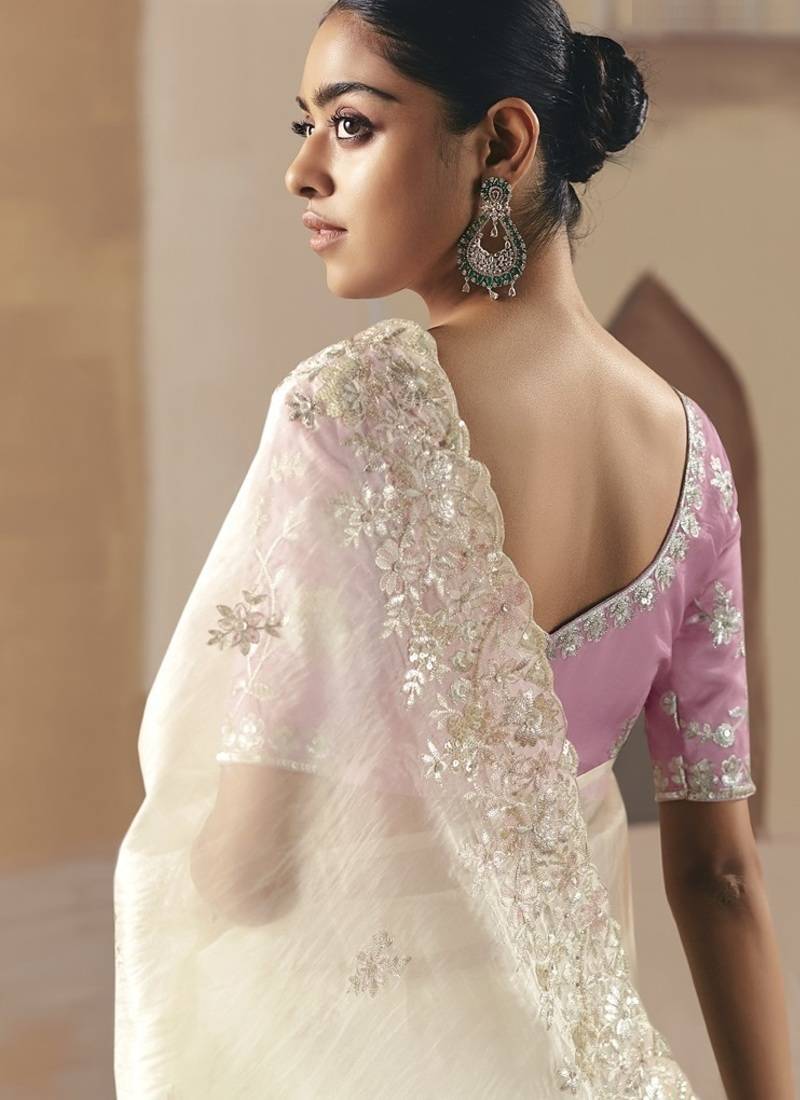 • | Saree | : | Color- White / Fabric- Glass Tissue |
