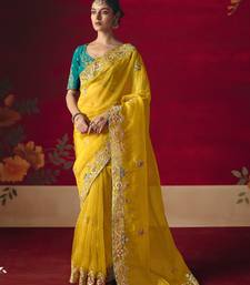 Yellow fancy saree with sequins dhaga & thread embroidered butti and designer blouse