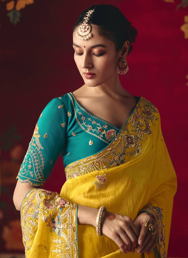 | Product Name | Yellow Fancy Saree With Sequins Dhaga & Thread Embroidered Butti And Designer Blouse | |
