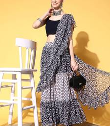 | Product Name | Inddus Black & White Ethnic Motifs Printed Poly Georgette Lehenga Drape Ruffle Saree With Blouse Piece | |