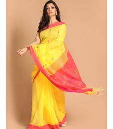 Yellow bengal handloom cotton blend work saree with blouse
