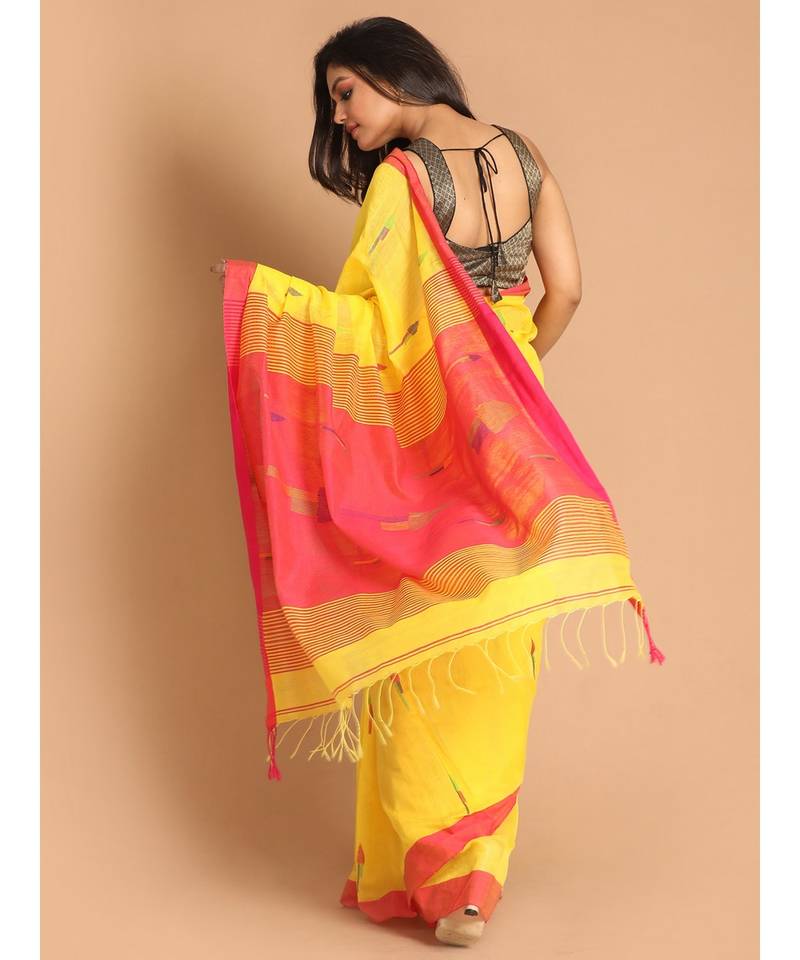 | Product Name | Yellow Bengal Handloom Cotton Blend Work Saree With Blouse | |