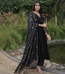 Black faux blooming kurta set with elegant embroidery & russian silk dupatta – premium festive wear stitched