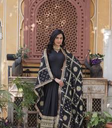 Black star georgette gown with heavy zari & sequins embroidery party & wedding wear stitched