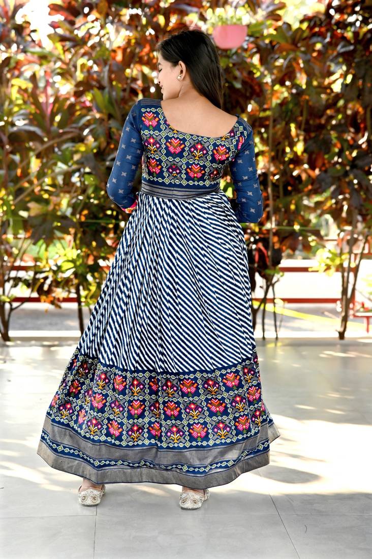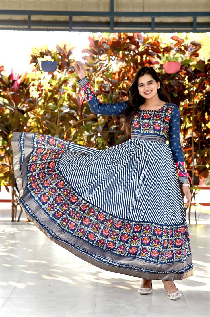 Blue pashmina printed gown with matching printed dupatta | semi-stitched | comfortable daily & festive wear