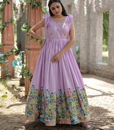 Dola silk printed & embroidered readymade gown lavender | 56" length | light festive & ethnic wear stitched