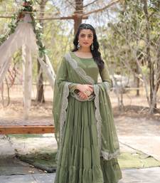 | Product Description | This Mehendi Colored Designer Gown With Dupatta Is Crafted From Premium Faux Georgette Fabric And Adorned With Fine Sequence Embroidery. The Gown Offers A 56 Inch Stitched Length, Providing A Graceful Drape And A Comfortable Ready To Wear Fit. The Plain Base Enhances The Sparkle Of The Sequins, Creating A Refined Festive Look Suitable For Multiple Occasions. The Matching Dupatta Is Made From High Quality Faux Blooming Fabric And Features Coordinated Sequin Embroidered Work. The Dupatta’s 2.3 Meter Length Allows Easy Draping And Completes The Outfit With Elegance And Balance — Perfect For Celebrations And Traditional Events. |