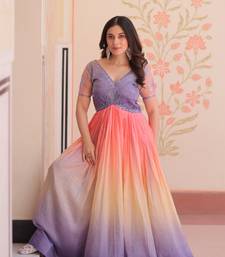 | Product Description | Step Into Elegance With This Stunning Lavender Gold Crush Gown, Crafted To Offer A Soft, Graceful Fall With A Premium Printed Look.