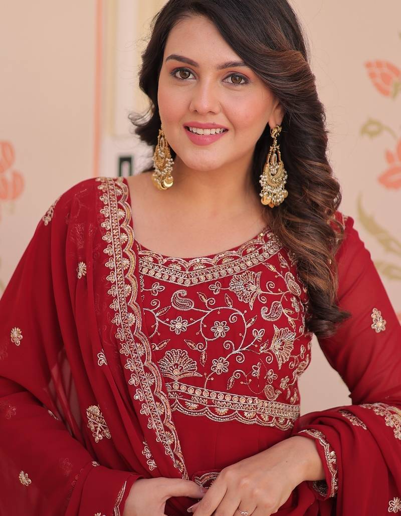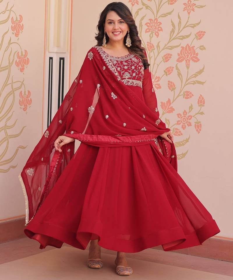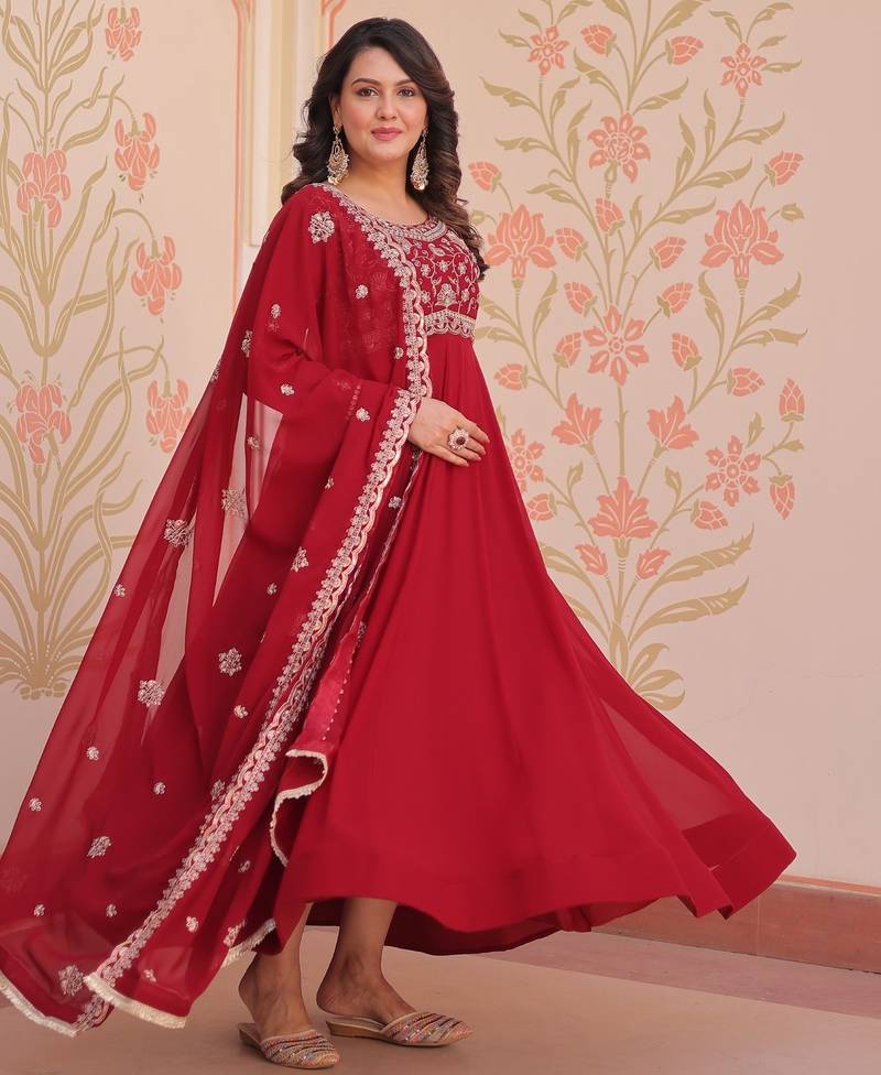 | Product Name | Maroon Faux Blooming Beads Embroidered Gown For Women | Fully Stitched Party & Festive Wear Gown With Matching Dupatta | |