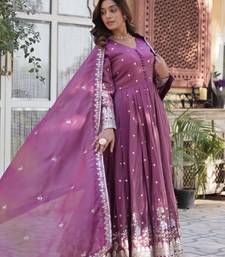 Onion pink viscose cosmos embroidered gown with zari & sequins work and lace-border dupatta stitched