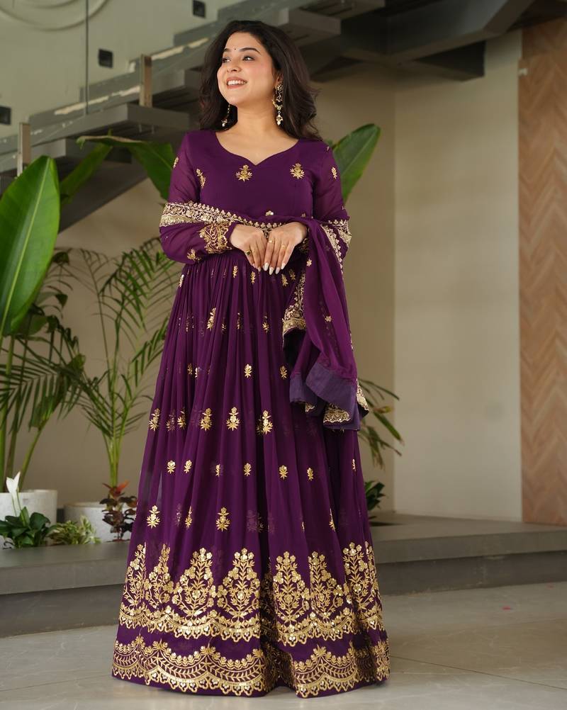 Product Name Purple Faux Blooming Designer Gown With Heavy Embroidery & Sequins Work | Wedding & Party Wear Gown