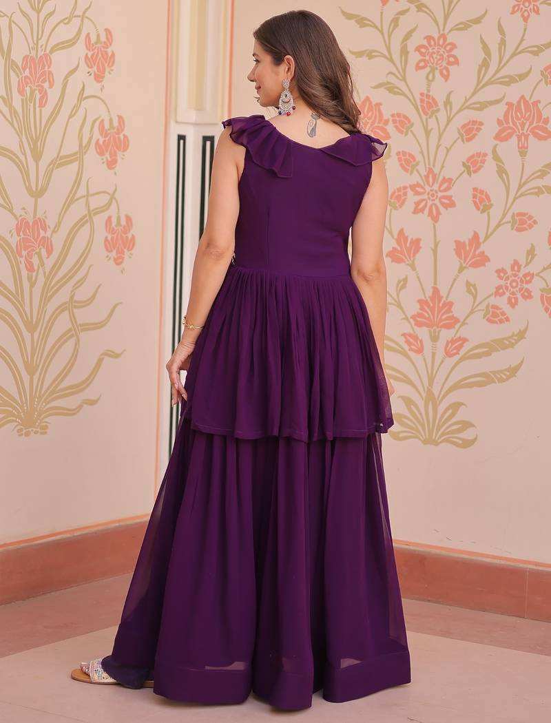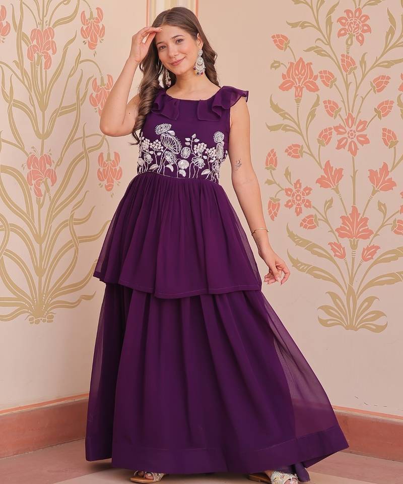 | Product Name | Purple Faux Blooming Gown With Bead & Sequin Embroidery | Fully Stitched Women’s Festive & Partywear Gown | |