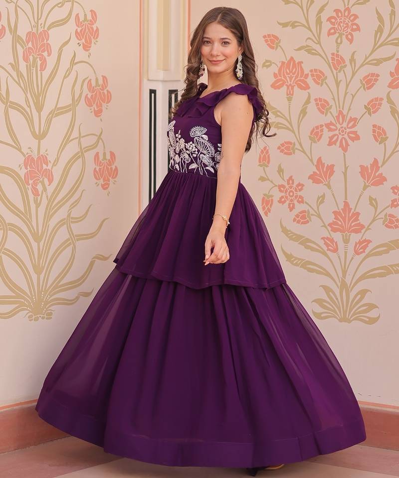 Purple faux blooming gown with bead & sequin embroidery | fully stitched women’s festive & partywear gown