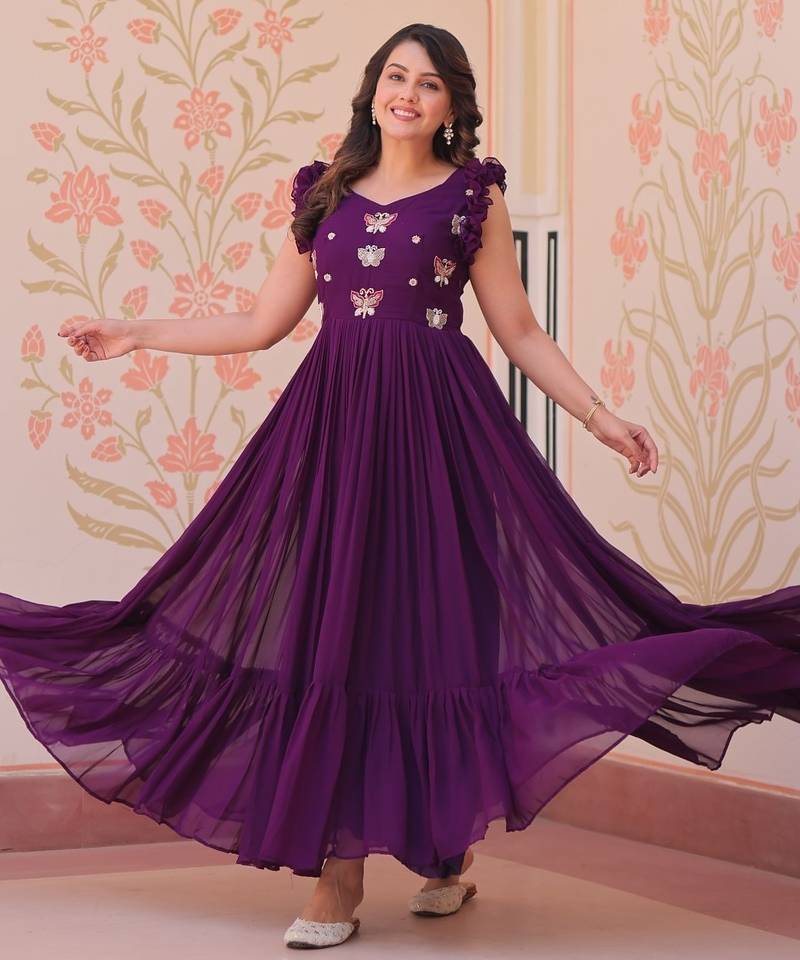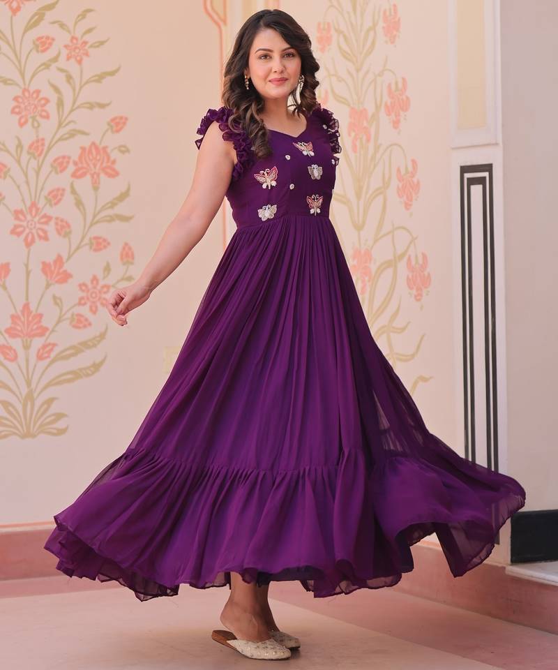| Product Name | Purple Faux Blooming Gown With Bead & Sequin Embroidery | Fully Stitched Women’s Partywear & Festive Gown | |