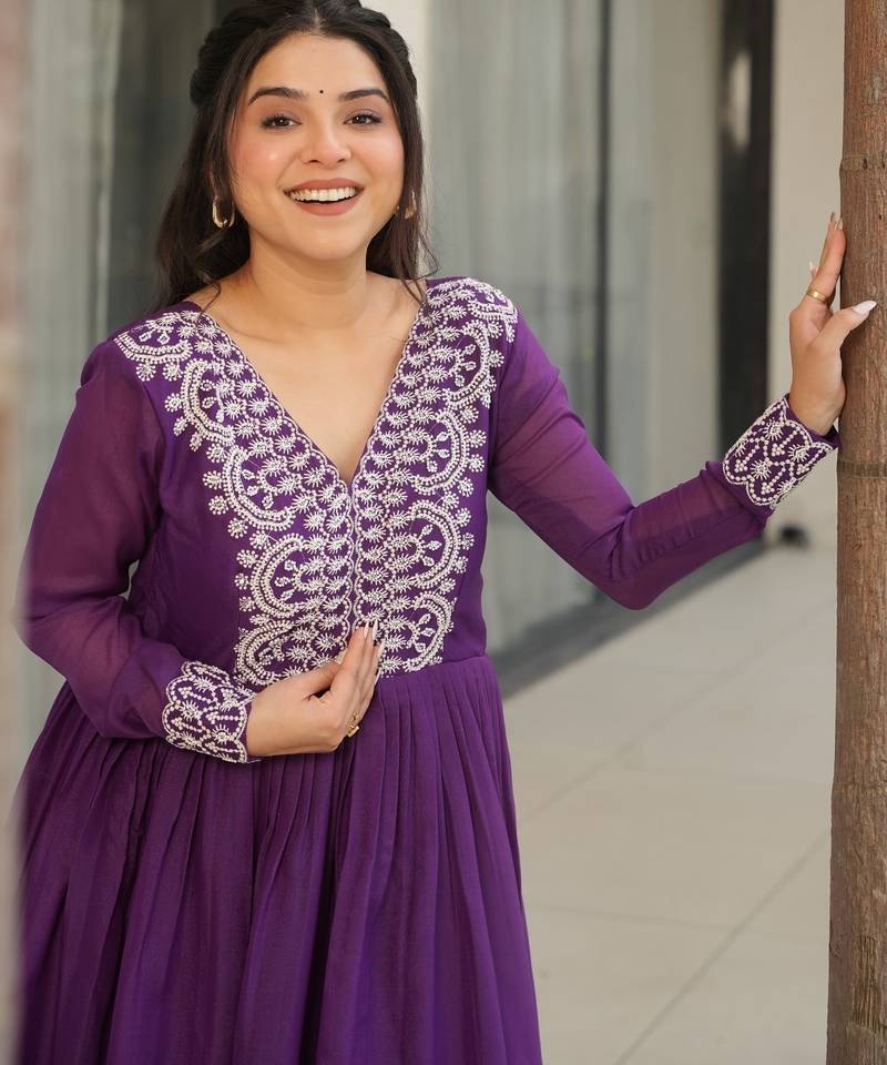 | Product Description | Look Graceful And Stylish In This Elegant Purple Star Georgette Gown, Crafted From Soft And Lightweight Georgette Fabric That Offers A Smooth Flow And Beautiful Drape. The Gown Features Detailed Bead And Sequin Embroidery, Giving It A Subtle Festive Sparkle Suitable For Weddings, Parties, Receptions, And Cultural Celebrations. Its Fully Stitched Design Ensures Ease Of Wear And A Comfortable Fit Throughout The Day. The Deep Purple Shade Adds A Royal Touch, Making This Gown A Perfect Choice For Women Who Appreciate Premium Quality, Stylish Detailing, And Modern Festive Fashion. |