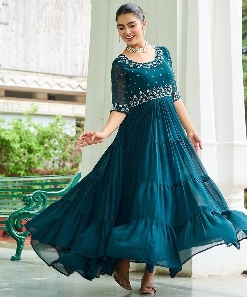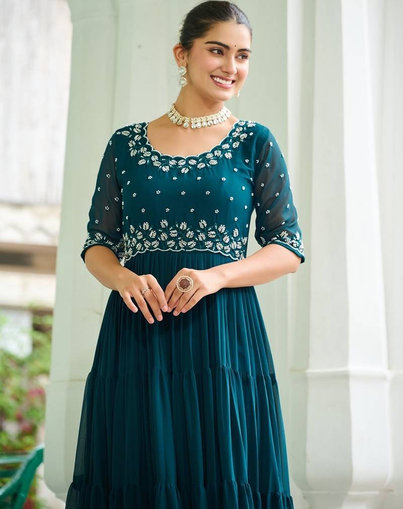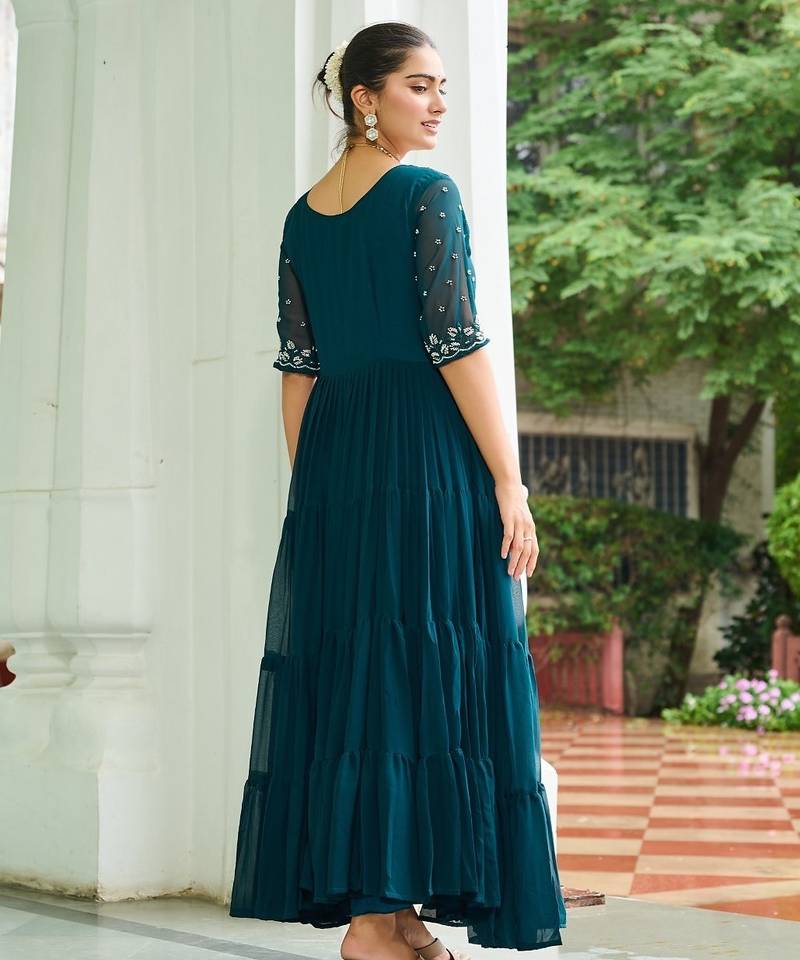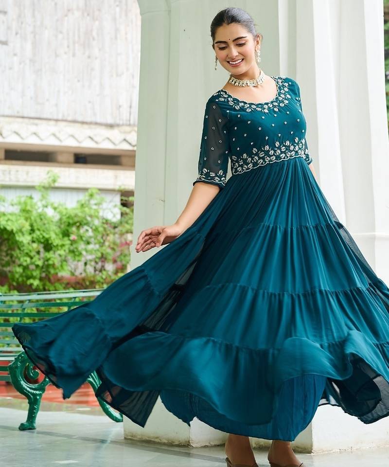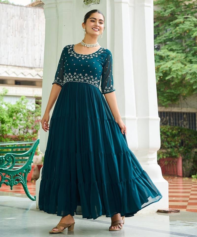 | Product Description | A Stunning Rama Color Embroidered Gown Crafted From Luxurious Faux Blooming Fabric, Offering A Rich, Elegant Appearance. Its Refined Embroidery Work Provides A Graceful And Modern Festive Look—Perfect For Parties, Celebrations, Casual Festive Gatherings, And Engagement Events. |