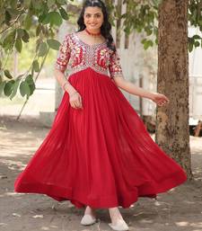 Product Name Red Faux Blooming Zari Thread & Sequins Embroidered Gown Festive & Wedding Special