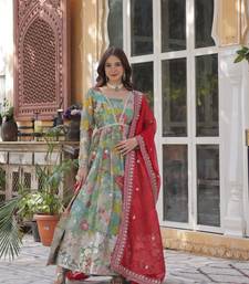 | Product Name | Sky Blue Russian Silk Designer Gown With Rich Embroidered & Printed Detailing | |