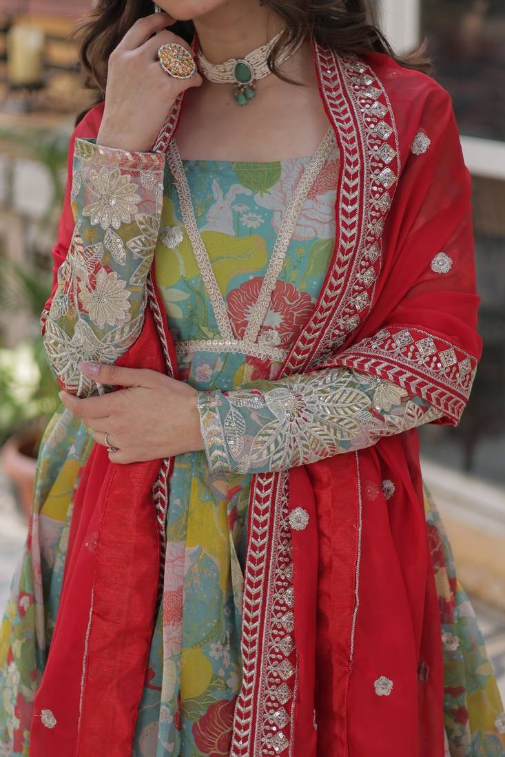 | • | Dupatta | : | Color- Red / Fabric- Silk |
