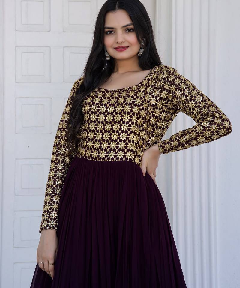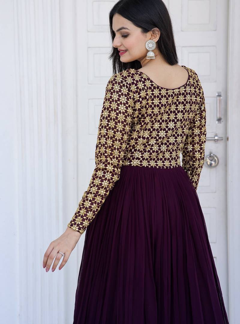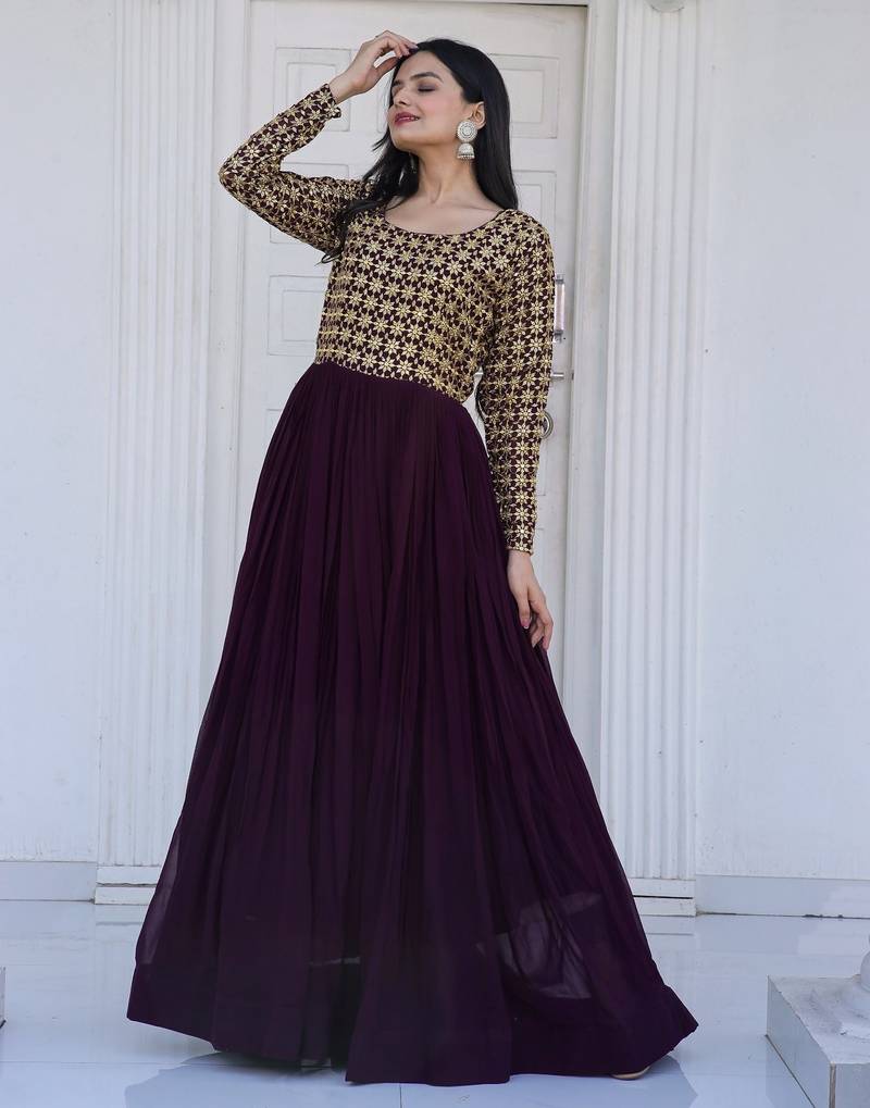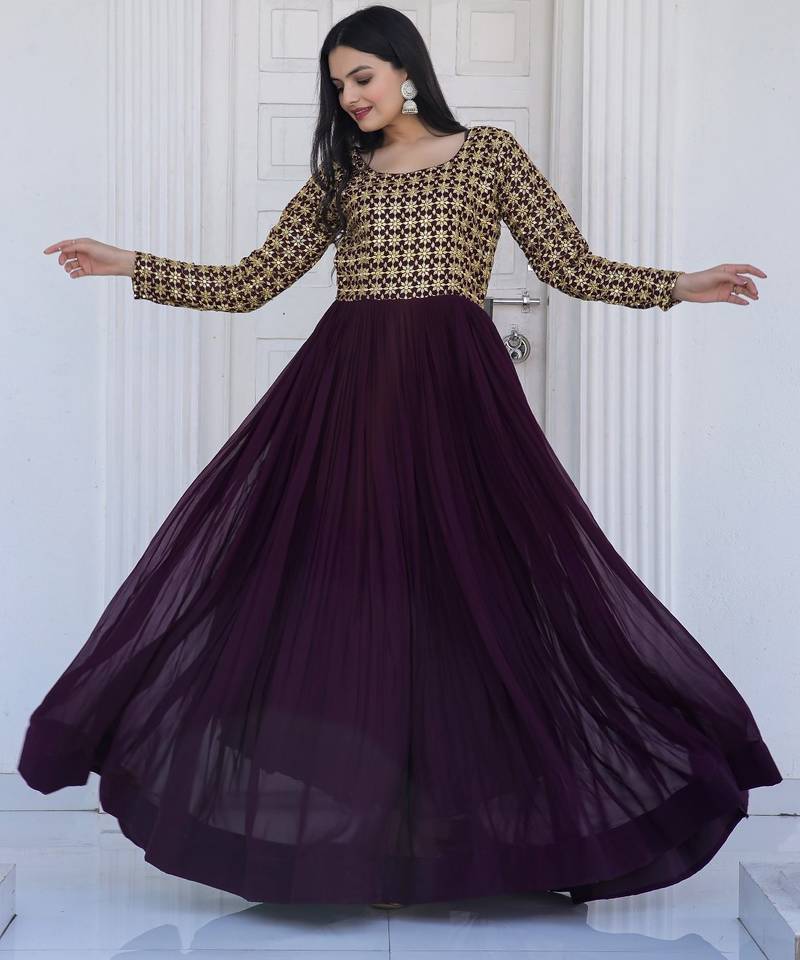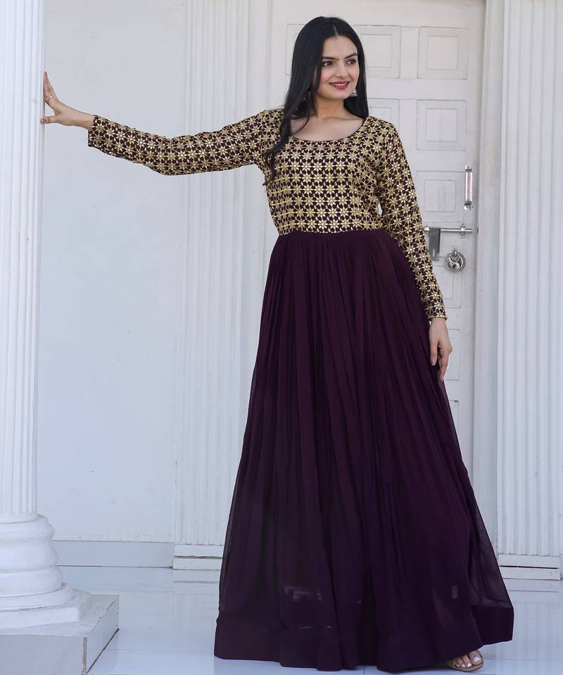 | Product Name | Wine Faux Blooming Printed Gown Graceful & Stylish | |