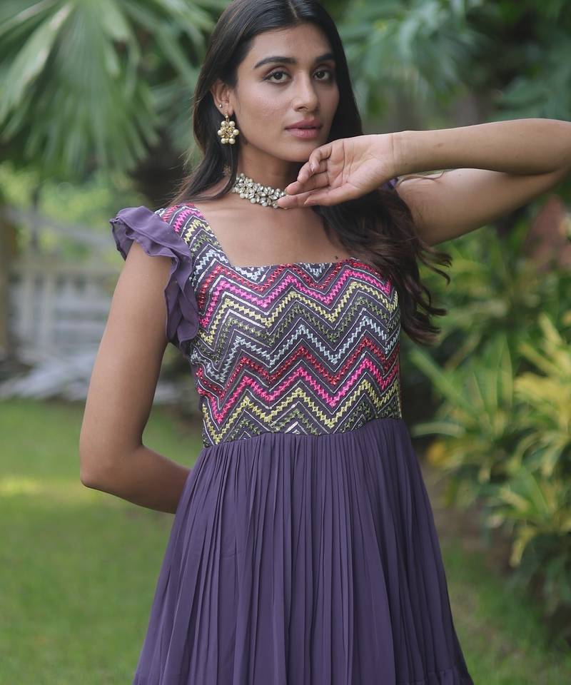 | Product Description | Make A Statement With This Luxurious Wine Faux Georgette Gown, Crafted With Beautifully Detailed Embroidery And Shimmering Sequins. Its Rich Color, Fluid Fall, And Festive Sparkle Make It Perfect For Special Occasions And Elegant Celebrations. |