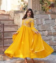 Product Name Yellow Faux Blooming Embroidered Gown With Heavy Zari Sequins Work & Matching Sequins Dupatta