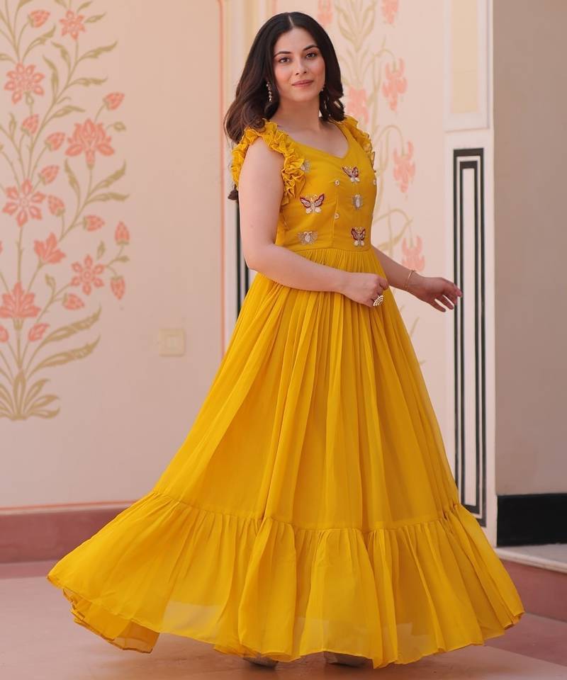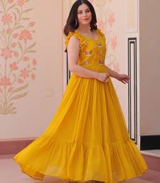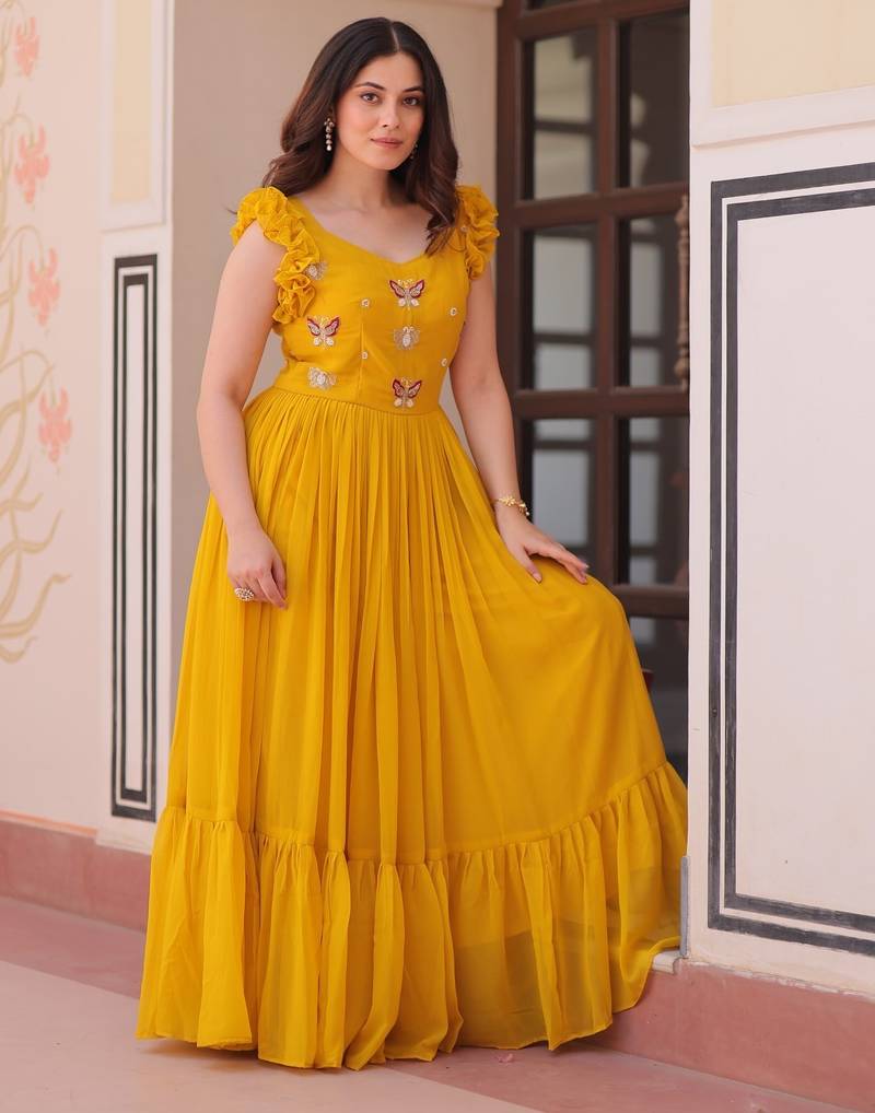 | Product Name | Yellow Faux Blooming Gown With Bead & Sequin Embroidery | Fully Stitched Women’s Festive & Partywear Gown | |