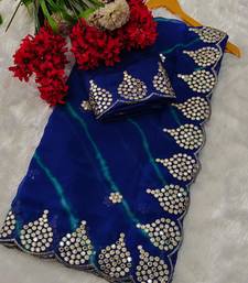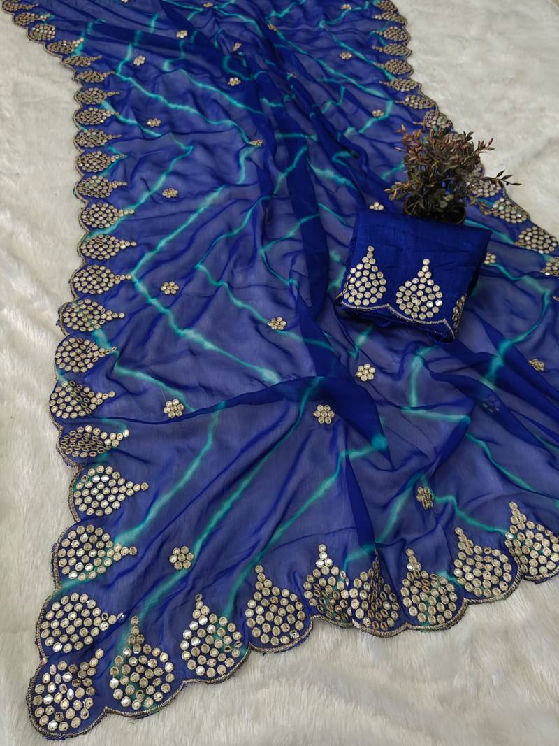Blue color designer georgette saree with zari cutwork border & bangalore blouse with work