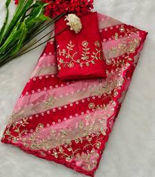 Chiffon lehriya bandhani design saree with heavy thread & sequins work