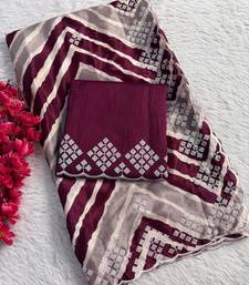Chiffon lehriya design saree with heavy thread & sequins work and mono banglori blouse