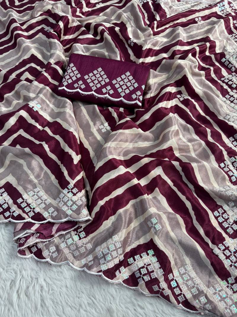 | Product Description | This Stunning Saree Is Crafted From Premium Chinon Fabric And Features An Elegant Lehriya Design Pattern That Creates A Graceful And Flowing Look. The Saree Is Beautifully Enhanced With Heavy Thread And Sequins Work, Adding Rich Texture And A Glamorous Finish. Soft, Lightweight, And Easy To Drape, It Is Perfect For Festive Occasions, Weddings, And Evening Parties. The Saree Comes Paired With A Mono Banglori Blouse, Completing The Ensemble With A Stylish And Coordinated Appeal. |