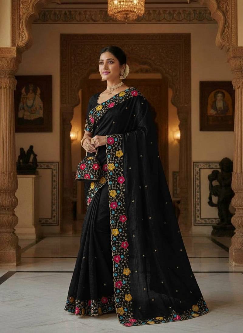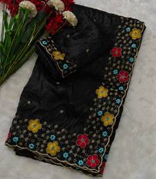 Designer chiffon saree with heavy sequins & thread embroidery saree with silk blend blend blouse