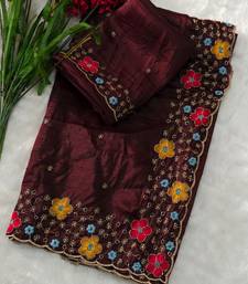 Designer chiffon saree with heavy sequins & thread embroidery saree with silk blend blend blouse