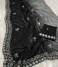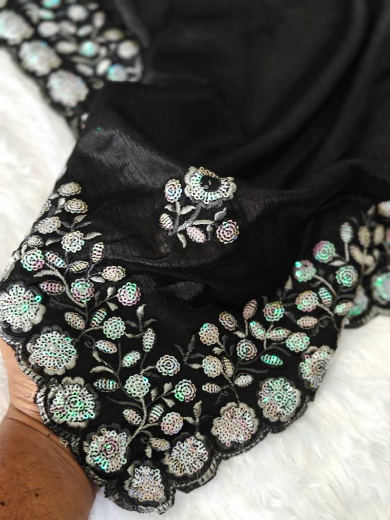 Elegant black chiffon saree with heavy designer sequins & thread work and silk blend blend blouse