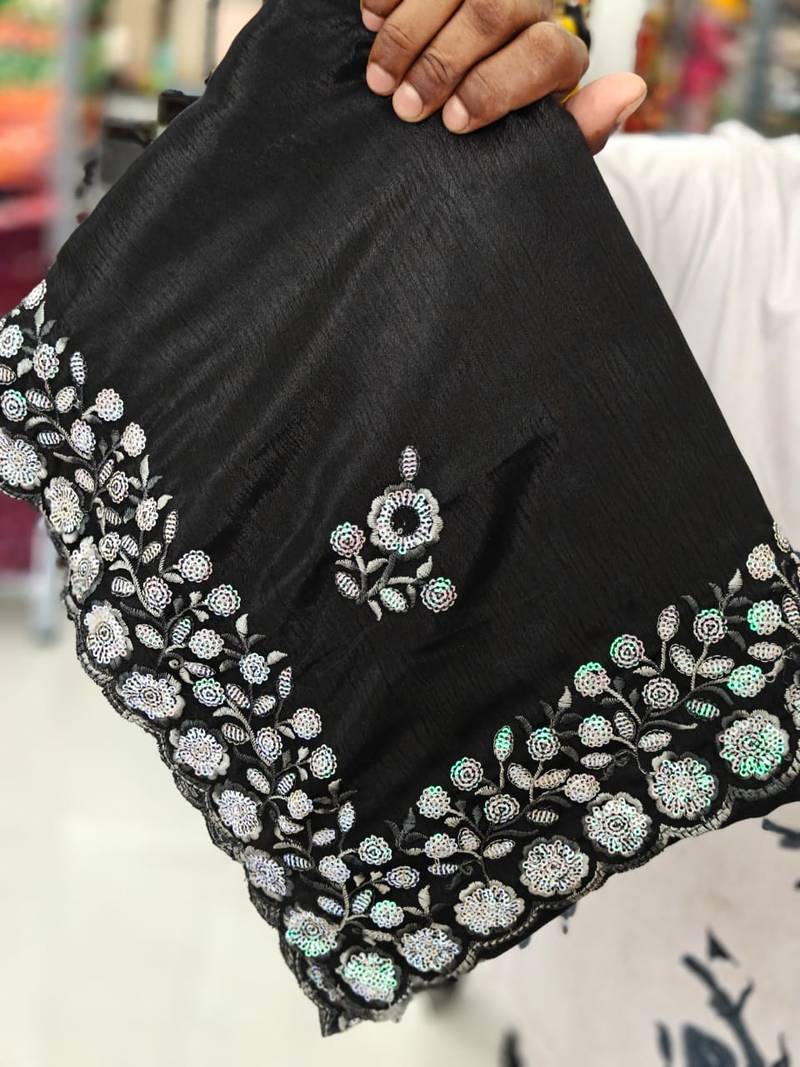 | Product Name | Elegant Black Chiffon Saree With Heavy Designer Sequins & Thread Work And Silk Blend Blend Blouse | |
